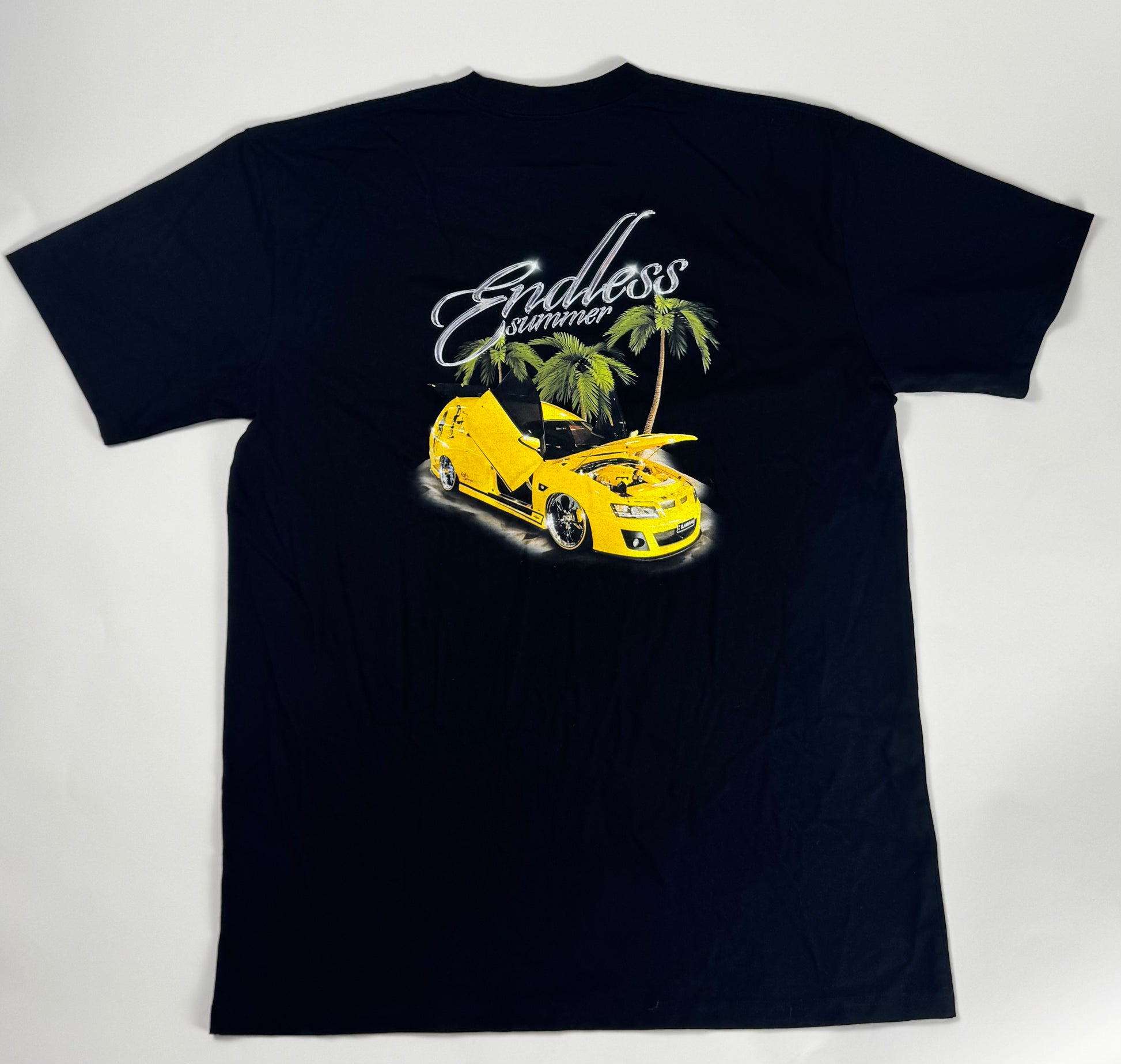 A graphic tee featuring our No Idle promo car — a VZ Maloo Sandman tribute, captured in summer.