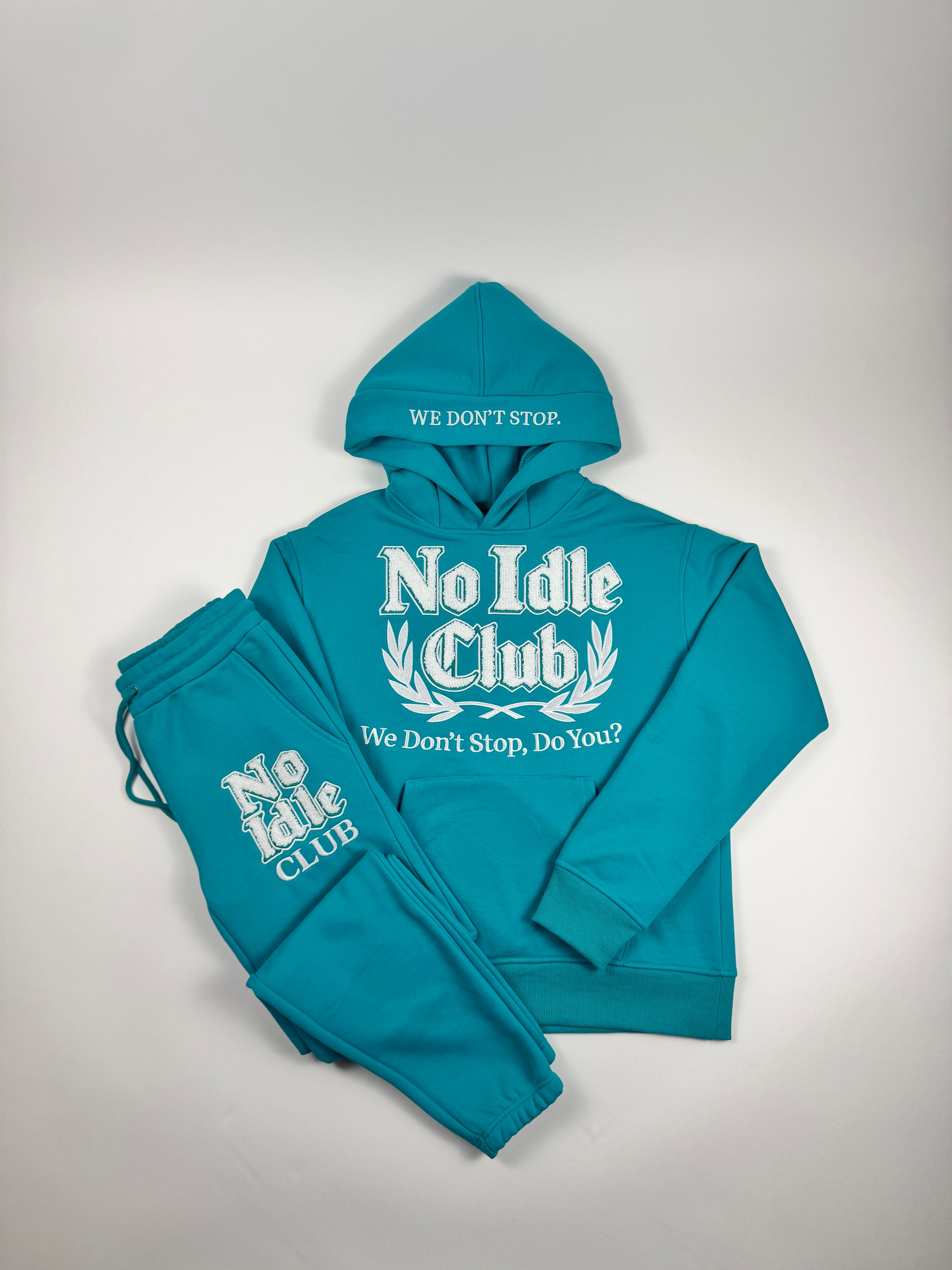 Cut from 450gsm brushed fleece, this hoodie and trackpant set delivers on both comfort and presence. The heavyweight build provides warmth and structure, while the luxury chenille and puff embroidery elevates the No Idle Club logos into textured statements. Built as a limited piece, this set captures the essence of motorsport culture reimagined as street luxury — designed for those who refuse to idle.